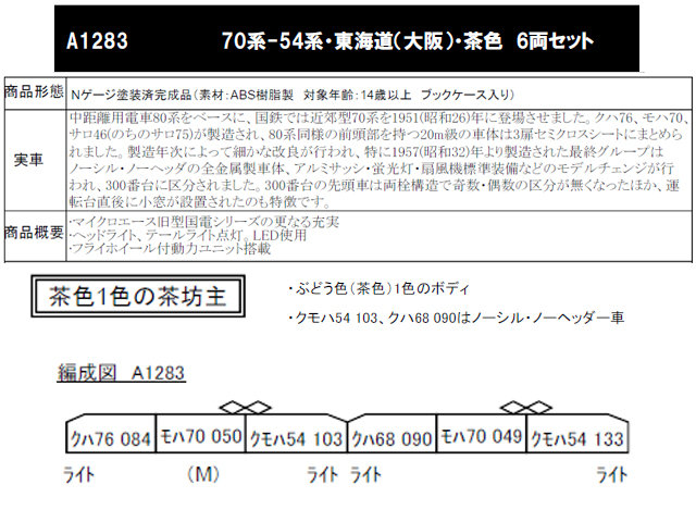 中距離用電車80系をベースに、国鉄では近郊型70系を1951(昭和26)年に登場させました。クハ76、モハ70、