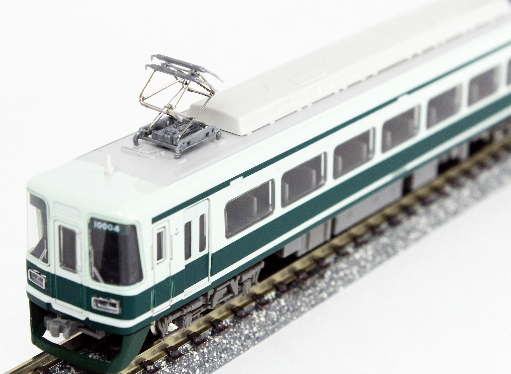 南海10000系は1985年に登場、1992年に中間車を新造および先頭車を中間車化改造して全編成が4両編成化。2015年6月に南海電鉄創業130周年と南海7000系の引退に合わせて、7000系を旧塗装に復刻、それに合わせる形で10004編成を登場時のカラーリングに塗装変更し、2016年3月まで運行。 製品は、既に発売済みの中間車新造編成のバリエーションとして、先頭から中間車へ改造された10004〜10006編成をモチーフに、改造中間車を新規製作して再現しました。現行の4両編成に、登場時の緑色のカラーリングと、当初存在しなかった組み合わせで、復刻塗装として2016年3月まで活躍し注目を浴びていました。