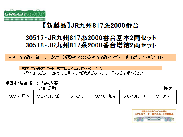 ・白色2両編成、福北ゆたか線で活躍中の2000番台2両編成のボディ・側面ガラスを新規作成