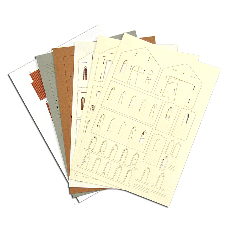 レーザーシートA〜E(5枚)と屋根シート・プラ板(各1枚)が入っています。