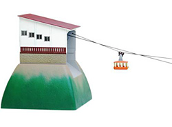 山頂駅、山麓駅、ゴンドラ×2、ロープ、山(山頂駅の台座)、シール