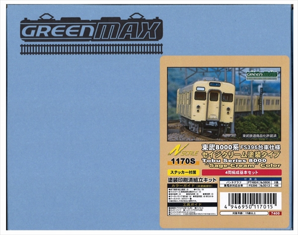 グリーンマックス 1170S 東武8000系 FS396台車 セイジクリーム 基本4両キット