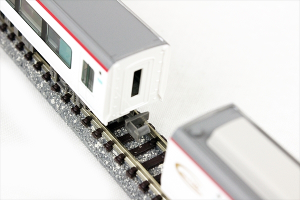 ■他形式との連結は、増結車両セット側に付属するスイングドローバーを使用。(本製品にはホルダー付きスカートのみ付属)