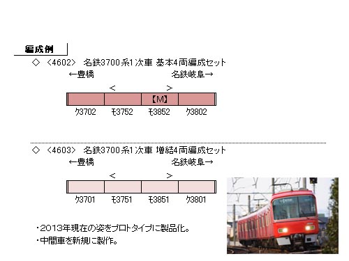 名鉄3700系は3500系の改良型として4両編成5本が製造されました。外観上では車体断面形状