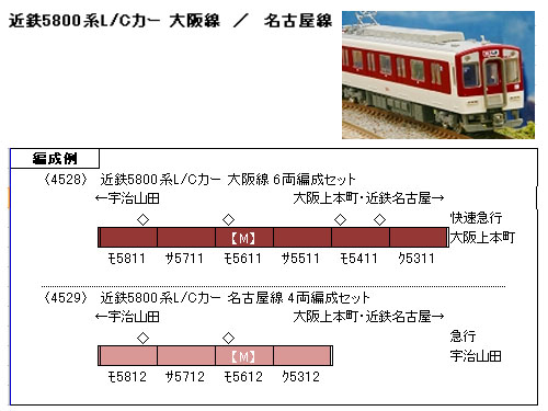 製品は、近鉄5800系L/Cカー(大阪線)の、動力付き完成品・6両編成セット。