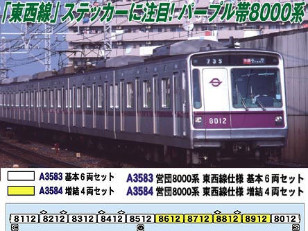 東西線用8000系は将来の半蔵門線復帰を前提としていたため、外見上は紫の車体帯を巻いているなど文