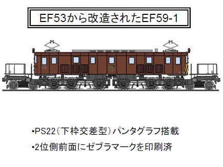 EF56は1937(昭和12)年登場した旅客用電気機関車です。中央に寄ったパンタグラフに特徴があり、また前期型と後期型とで前面形状に差異があります。EF53は鉄道省が1932(昭和7)年から製造した旅客用電気機関車です。後にEF56形5両、EF53形全車が山陽本線瀬野〜八本松間の補機であるEF59に改造されました。改造内容は歯数比の変更、重連総括制御装置の取り付け、連結器解錠装置の取り付けなどで、下り方の前面には黄色と黒で大きくV字形の警戒色が塗装されました。