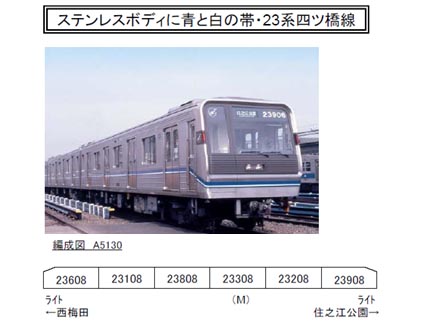 四つ橋線用23系は当初5両編成で登場しましたが、1996(平成8)年から輸送力増強によって6両編成化が行われました。中央線用24系は当初6両編成11本が投入されましたが、のちに谷町線と車両転配が行われて現在は6両編成4本が活躍しています。