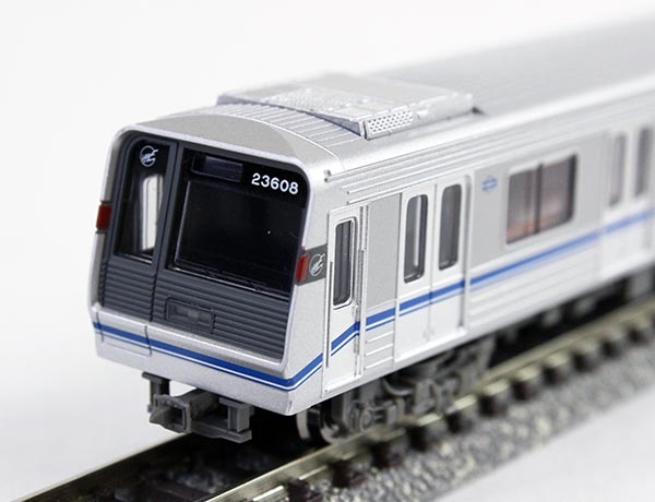 大阪市交通局では1984(昭和59)年から中央線・谷町線にアルミ車体製のVVVFインバータ制御車20系を投入していましたが、1990(平成2)年より大幅にモデルチェンジした新20系を各線に投入開始しました。車体は18m級片側4扉の軽量ステンレス製で、前面はくの字形に傾斜してダークグレーで窓周辺を縁取った額縁デザインが採用され、中央に2灯装備されたヘッドライトと額縁の左右に埋め込まれたテールライトの独特の外観から大きな話題となりました。御堂筋線用21系、谷町線用22系、四つ橋線用23系、中央線用24系、千日前線用25系が1990(平成2)年から1998(平成10)年に亘って合計572両製造され、30系・50系などの非冷房旧型車を一層して輸送サービスの向上に大きな役割を果たしました。