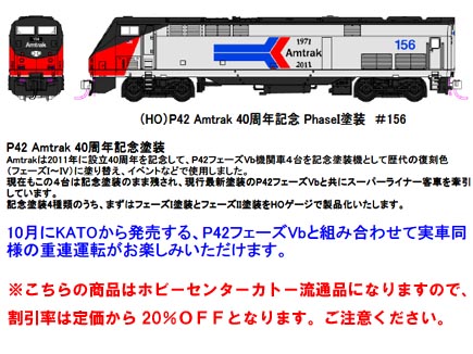 HOゲージ完成品車両、P42 アムトラック40周年記念フェーズI塗装 #156