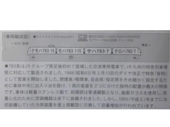 マイクロエース A3661 783系 クロハ782-0番台 特急「ハイパーにちりん」4両セット 20,295JPY JANコード 4968279122129 商品說明 ヘッド、テールライト点灯。屋根上にクーラーが設置された後の姿です。 評論 當前此商品還沒有評價 共有0個評價我要評價 關於購買 有關付款方式、送貨方式、運費等的信息,請查看下方的“常見問題”。 常見問題