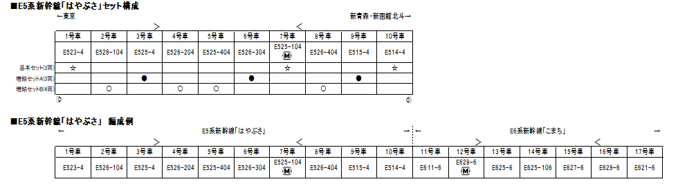 既存製品とは異なる車番を採用のほか、印刷済の行先表示も「はやぶさ 新函館北斗」へ変更します。
