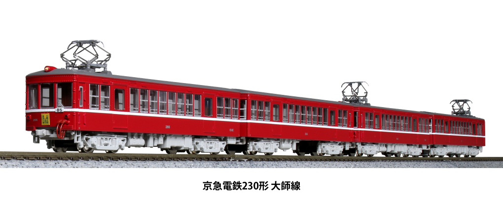 京浜急行230形は16m2扉の構造を持つインターバーン用の車両です。昭和初期に製造された車両ながら大形の窓を持つスタイルで、当時の最新技術が盛り込まれた戦前の私鉄車両を代表する名車のひとつでした。昭和47年(1972)まで京急本線で、その後は大師線・空港線などの支線で昭和53年(1978)まで活躍しました。また、一部車両は1977〜1980年にかけて香川県の高松琴平電気鉄道へと譲渡され、平成19年(2007)まで活躍する姿が見られました。