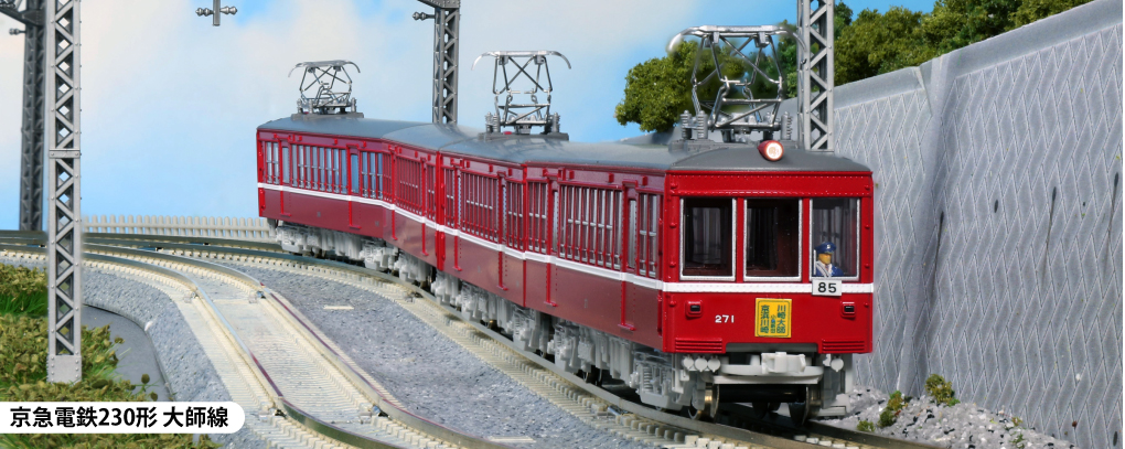 昭和50年(1975)前後、大師線。末期に運用されていたスマートなスタイルが特徴の230形を4両編成で製品。