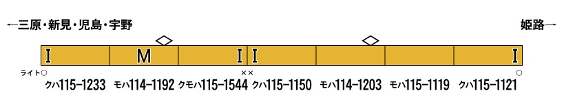 ■モハ115-1119の側面方向幕は印刷にて再現