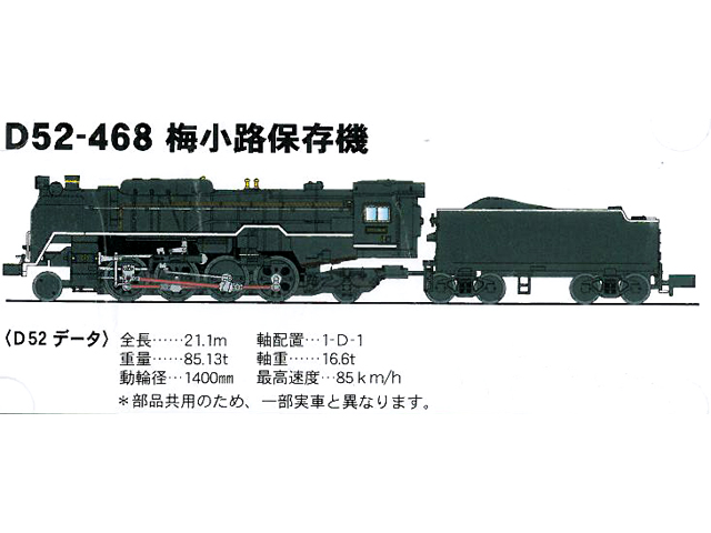 マイクロエース A6409 D52-468 梅小路保存機 10,818JPY JANコード 4968279126721 商品說明 ・マイクロエース蒸気機関車シリーズの更なる充実・2000年6月発売のD52のバリエーションモデル・改良動力ユニット・ヘッドライト点灯・部品共用のため一部実車と異なりますD52は大戦中の輸送力強化方針に伴って登場した機関車で、1200t列車の牽引が可能な性能を持っています。468号機はD52のラストナンバーとして1946(昭和21)年に登場し、主に東海道・山陽本線で活躍した後、1960(昭和35)年に北海道へ渡り、五稜郭機関区に配属されて函館本線の貨物列車を牽引して活躍していました。このため、テンダーライト位置や旋回窓などに特徴が見られます。1972(昭和47)年に梅小路蒸気機関車館へ収蔵され、現在に至るまで静態保存されています。1号機は1943(昭和18)年に浜松工場で誕生し、東海道・山陽本線で貨物列車の牽引に活躍した後、1966(昭和41)年に廃車となり、翌年から広島工場にて静態保存されています。 評論 當前此商品還沒有評價 共有0個評價我要評價 關於購買 有關付款方式、送貨方式、運費等的信息,請查看下方的“常見問題”。 常見問題