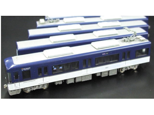 京阪3000系は、2008年10月に開業した中之島線で運行される「快速急行」用として新造された車輛です。1列+2列配置の転換クロスシートの採用や、シートの表地にスエード調の素材を使用、側窓には複層ガラスを採用するなど快適で静かな車内を目指しています。デザイン面においては、月をモチーフとしてフロントフェイスや車内に円弧状の造形を多く取り入れ、これまでにない斬新なものとなりました。また在来車を含めカラーリングを一新、3000系では水都・大阪、京都の伝統色をモチーフに「ネイビー・シルバー・ホワイト」の3色を採用しています。2009年2月現在、8輛編成6本が活躍しています。●新規設定の4輛編成セット(No.4101、4102)は、車番(ナンバー)を印刷済みといたします。※8輛編成セット(No.4083)の車番(ナンバー)は、従来どおり車輛マーク(転写マーク)による選択式となります。 特徴■2008年10月開業予定の京阪中之島線に向けて開発された新型車輛をいち早く製品化致します。■本形式に採用された「ネイビー・シルバー・ホワイト」の新しい塗装パターンを再現いたします。■前面ヘッドライト(黄色)・テールライト(赤色)は、走行時、共に点灯いたします。■テールライト部分は、前進時の通過表示灯として黄色に点灯いたします。■ロゴマーク(KEIHAN・COMFORT SALOON)は印刷済みとなります。■簡易運転台付中間車には、妻面に回送用ライト(非点灯)を再現いたします。■客席部分には、青色成型のクロスシートを再現いたします(モーター車を除く)。■床下機器・台車(KW77E(M車用)、FS577(T車用)2形式)を新規に製作いたします。■新仕様品(No.4101、4102)の車体に記されるナンバーは、前面、側面とも印刷済みとなります(トップナンバーの3001みとなります(トップナンバーの3001編成)。製品の仕様■ワイパーは前面ガラスに印刷にて再現いたします。■屋上機器のうち、アンテナ、ヒューズボックスはお客様による取り付けとなります。■前面、側面の行先方向幕及び種別幕は、付属のステッカーから選択による貼付となります。■(該当部は点灯いたしません)■動力ユニットは、完成品モデル標準仕様の2モーター型を採用いたします。■ボディマウント式カプラーには対応いたしません。■床下機器・屋上機器パーツなどにおいて一部部品を共用とさせていただきますため、実車と異なる箇所がございます。■No.4083:前面、側面のナンバーは、付属いたします車輛マーク(転写式)でのお客様による選択式となります。■新仕様品(No.4101、4102):前面・側面ナンバーは印刷済みのため、車輛マークは付属しません。■主な材質 本体:ABS樹脂、ケース:PP付属品■ステッカー(S−4083)【4083=2枚/4101=1枚/4102=1枚】■車輛マーク(M−4083)【4083=1枚/4101・4102には付属しません】■屋上機器(アンテナ、ヒューズボックス)【4083=3枚/4101=2枚/4102=1枚】■ ※近鉄22000系と同品●グレー色成形部品別売■GM ・集電板(NO.98−2/4ケ組)※室内照明ユニット使用時。必要数→【4083=5ケ/4101=1ケ/4102=4ケ】■TOMIX ・室内照明ユニットLC白色(NO.0733/1本入、または0737/6本入)