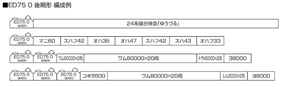 ●付属品…選択式ナンバープレート(「136」「142」「147」「157」)、選択式メーカーズプレート(「日立」「東芝」「三菱」)、クイックヘッドマーク(「ゆうづる」「あけぼの」)、ジャンパ栓、交換用ナックルカプラー
