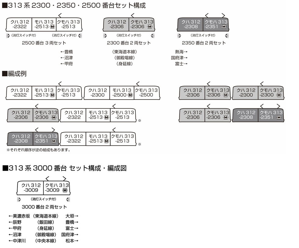 ・従来製品とは異なる編成番号で製品化。ベビーカーマークや保安表記などの、表記類もアップデート